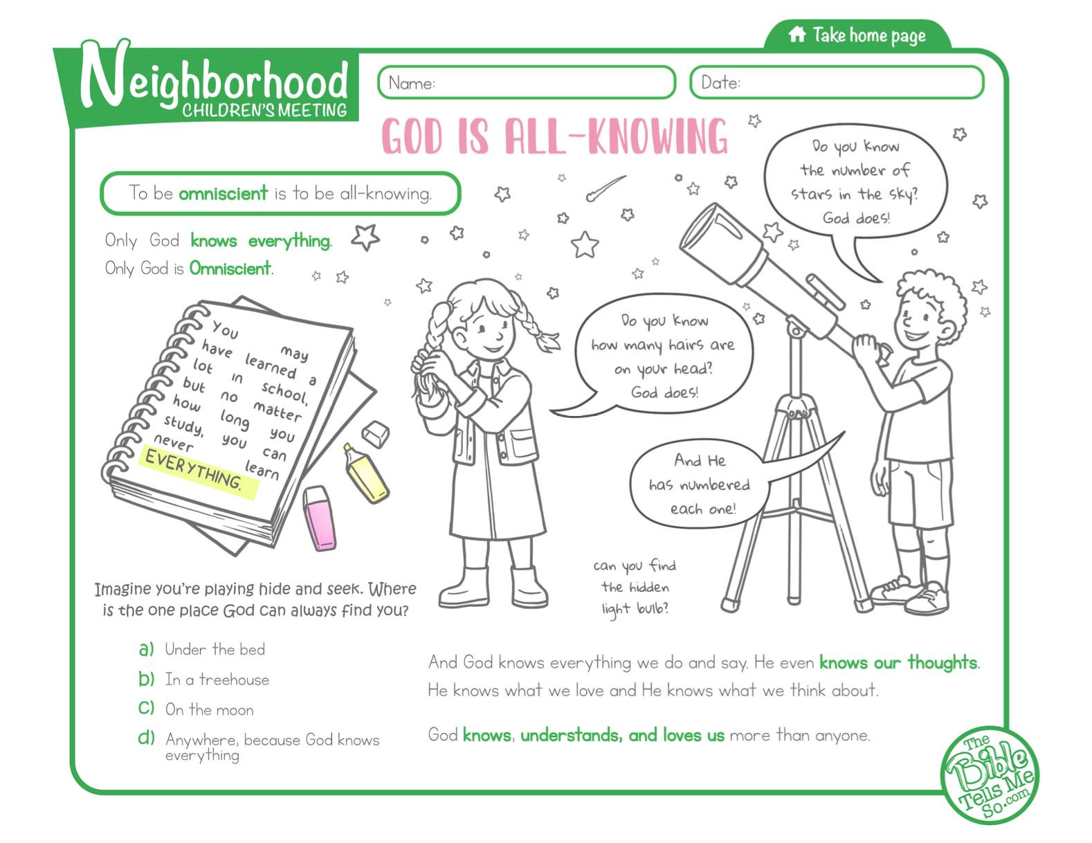 The printouts were a big help for us to start. The kids loved to color the printouts and the Take Home Pages were a nice gift at the end. It was so easy to meet and talk with the parents of the children that came. Praise the Lord for NCMs! They are not hard, they are joy to do.
